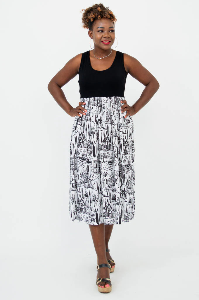 The black and white versatility of this dress make it easy to pair and mix into wardrobe seamlessly.