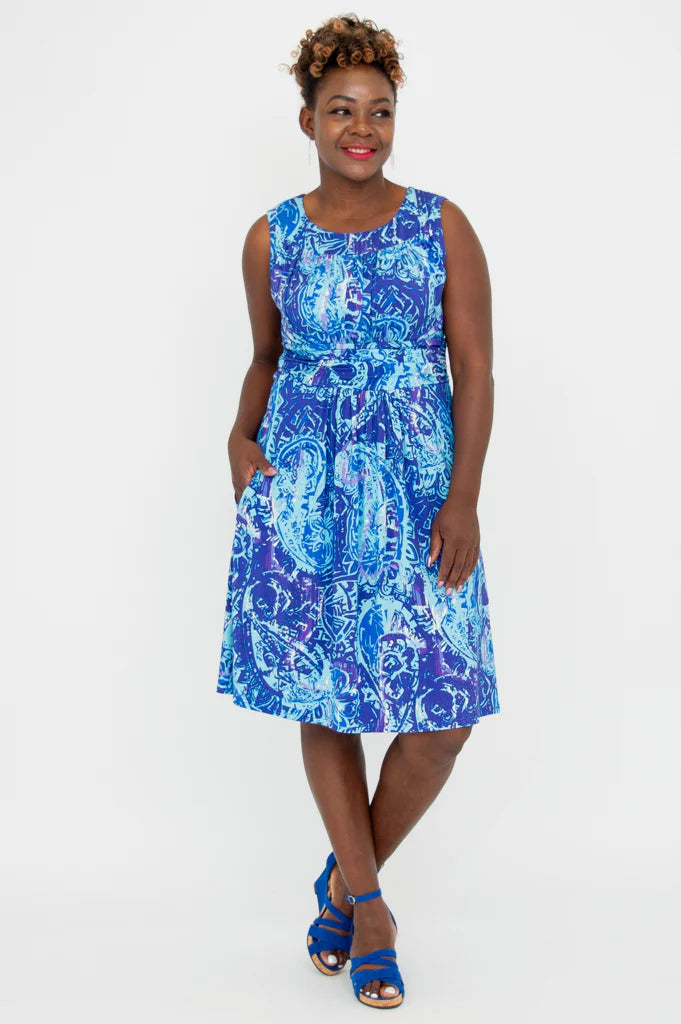 The Roam dress a flattering style that will accentuate your curves. It features a ruched bodice, fitted waistband and pockets.